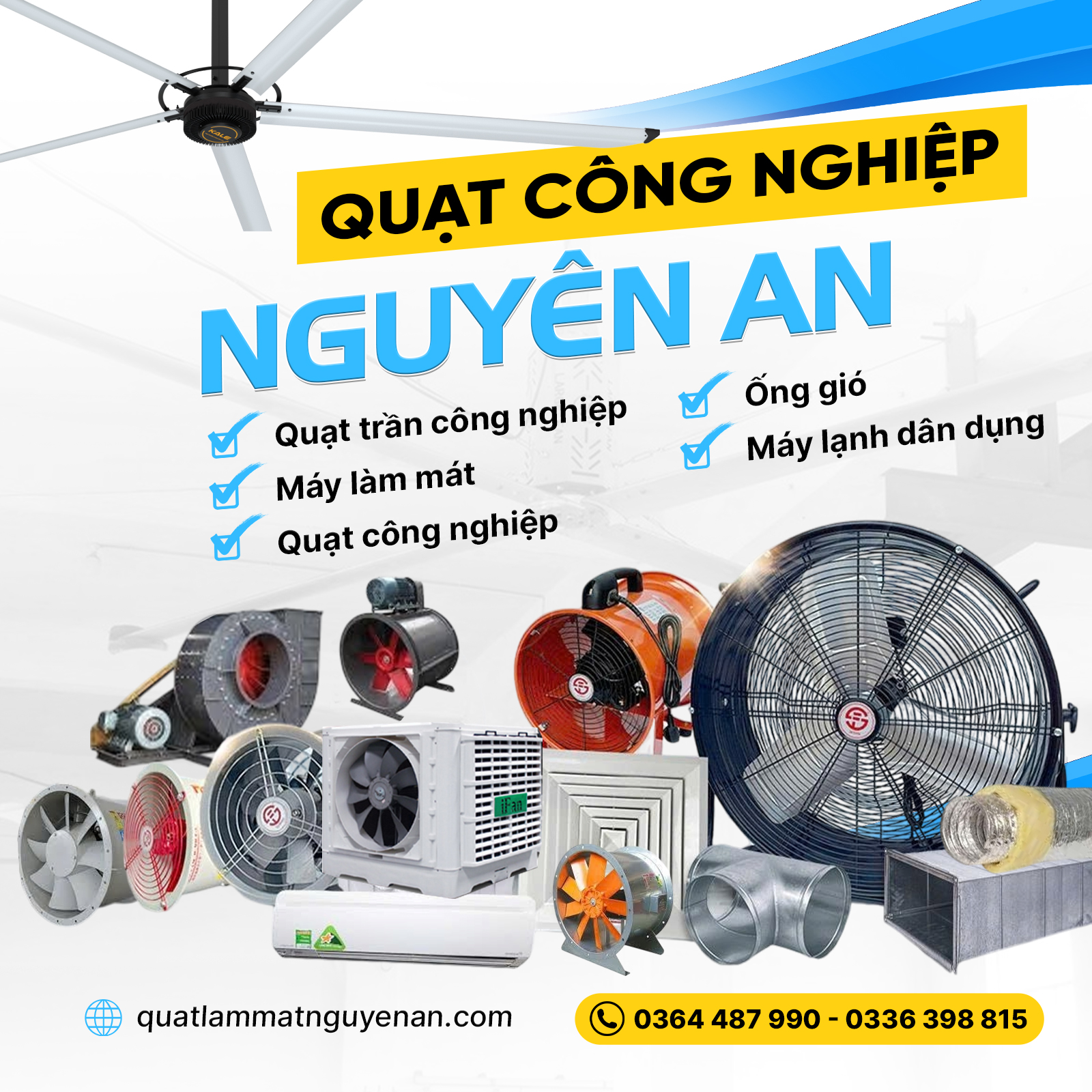 Chuyên giải pháp làm mát trọn gói: cung cấp vật tư, thiết kế, thi công, quạt trần, quạt công nghiệp, máy làm mát, ống gió, cùng dịch vụ lắp đặt, vệ sinh, sửa chữa máy lạnh dân dụng.